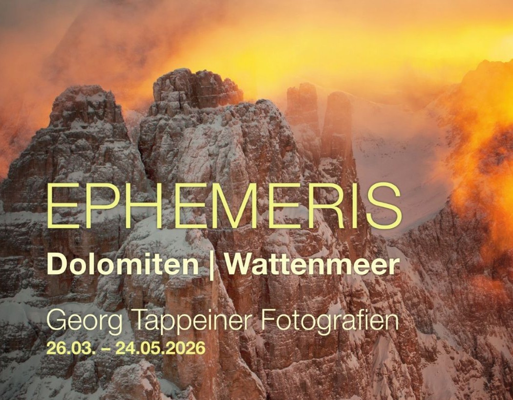 Was haben die Dolomiten und das Wattenmeer gemeinsam? Auf den ersten Blick nichts, doch der Südtiroler Fotograf Georg Tappeiner veranschaulicht in seiner Fotoausstellung „Ephemeris“ die Verbindung zwischen den beiden faszinierenden Landschaften mit seinen großformatigen Bildern. In Italien ragen majestätische Zinnen und felsige Türme steil in den Himmel. In Deutschland beeindruckt der unendliche Horizont, an dem Wasser, Sand und Himmel ineinanderfließen. Diese beiden Landschaften verbindet die Erdgeschichte, denn an der Stelle, wo heute die „Bleichen Berge“ stehen, war einst ein urzeitliches Wattenmeer. Aufgrund der Schönheit und der Einzigartigkeit ihrer Natur wurden sie beide 2009 in die Welterbeliste der UNESCO aufgenommen. So lädt Tappeiner die Besucherinnen und Besucher der Ausstellung zu einer erstaunlichen Reise zwischen Bergen und Meer, Felsen und Wasser ein.