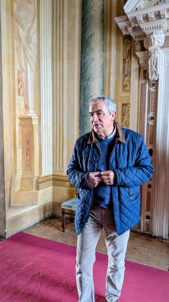 Die Sonne scheint auf die Villa „La Rotonda“, doch ihre Kraft ist im November nicht mehr so groß wie im Hochsommer. Zart streift sie die hellen Mauern und die noch grüne Wiese, die das Meisterwerk des Stararchitekten Andrea Palladio, die Villa Almerico Capra, umrahmt. Graf Nicolò Valmarana, Besitzer der Villa, führt uns zu diesem Gebäude in der Vorstadt von Vicenza. Palladio entwarf die Villa für Paolo Almerico, einen hohen Prälaten, der gegen Ende seiner Karriere vom Hof des Papstes nach Vicenza zurückkehrte. Mit dieser Villa, die aufgrund ihres runden Hauptsaals im Inneren vermutlich „La Rotonda” genannt wird, wollte er sich von seinen Zeitgenossen abheben.
