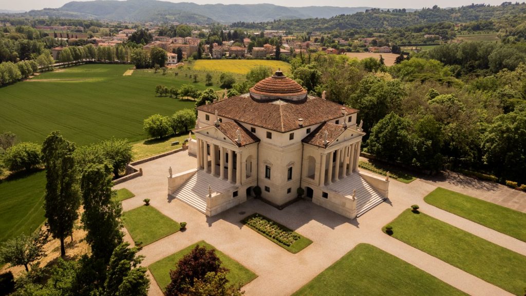 Text und Bilder: Nicoletta De Rossi – Bild des Hotels: Hotel De La Ville – Bilder der Villa aus der Vogelperspektive: Villa La Rotonda