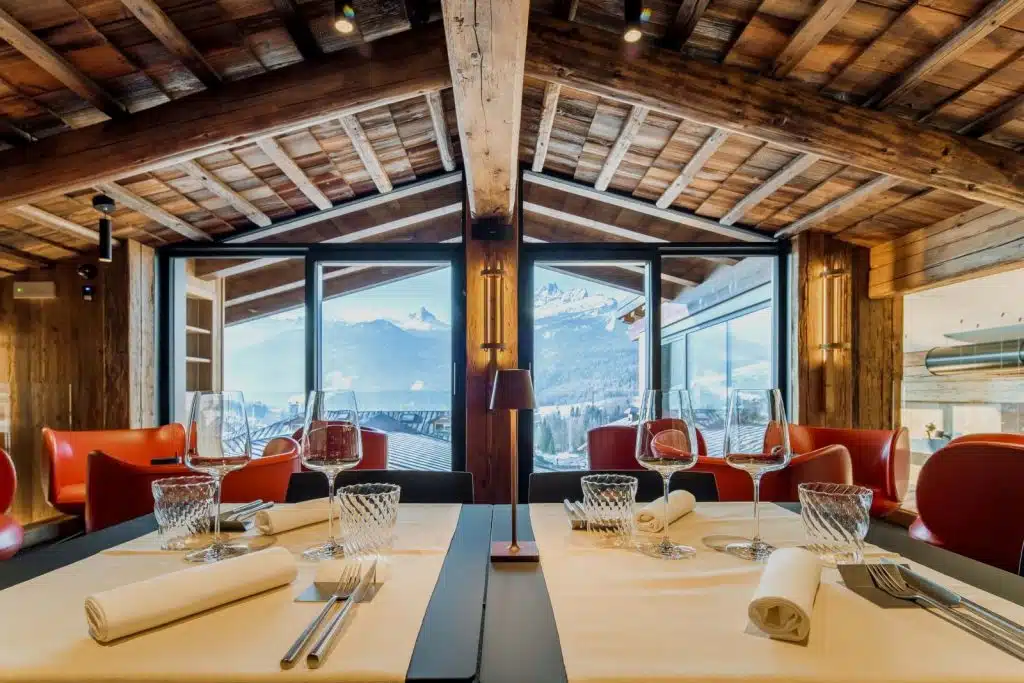 The Roof Cortina Bistrot & Lounge Bar: Das Lokal im vierten Stock der „La Cooperativa di Cortina” bietet eine Panorama-Terrasse mit Blick auf die Dolomiten und ein modernes, doch gemütliches Ambiente. Für den Dachboden wurde Holz aus einer alten Scheune aus Ampezzo mit seinen perfekt erhaltenen Schnitzereien verwendet. Hier kann man nicht nur Kaffee und Kuchen von Feinsten, sondern auch schmackhafte Gerichte genießen.