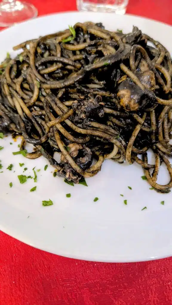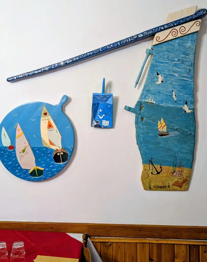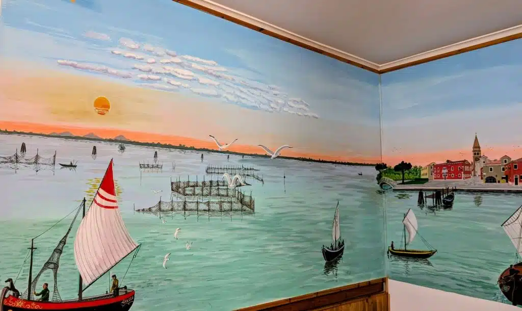 Seit vier Generationen bietet das urige Lokal eine typische Fischküche der Lagune. Die sympathische und kompetente Bedienung wird Antipasti misti empfehlen, und diesem Vorschlag sollte man folgen, denn die Seppioline (kleine Tintenfische), der Baccalà mantecato (luftige Stockfischcreme), die gratinierten Capesante (Jakobsmuscheln) oder die Cicale di mare, die in venezianischer Mundart Canoce genannt werden, sind sehr lecker und frisch. Nach den Vorspeisen schafft man nur noch einen Primo Piatto, zum Beispiel Spaghetti al nero di seppia oder mit Muscheln, oder einen Secondo Piatto, wie einen Fisch der Saison mit gelber Polenta und Kartoffeln, begleitet mit einem Glas Weißwein der Region. In der warmen Jahreszeit genießt man die Mahlzeiten draußen unter einer Pergola, wo auch der Comicautor Hugo Pratt sehr oft verweilte. Und tatsächlich sind einige Zeichnungen von Pratt mit seiner berühmtesten Comicfigur Corto Maltese an den Wänden des Lokals zu sehen. Es empfängt seine Gäste mit Tischen, die mit traditionellen roten Tischdecken gedeckt sind. Überall hängen bunte Bilder von Booten und dem nahen Meer – ein echter Augenschmaus!