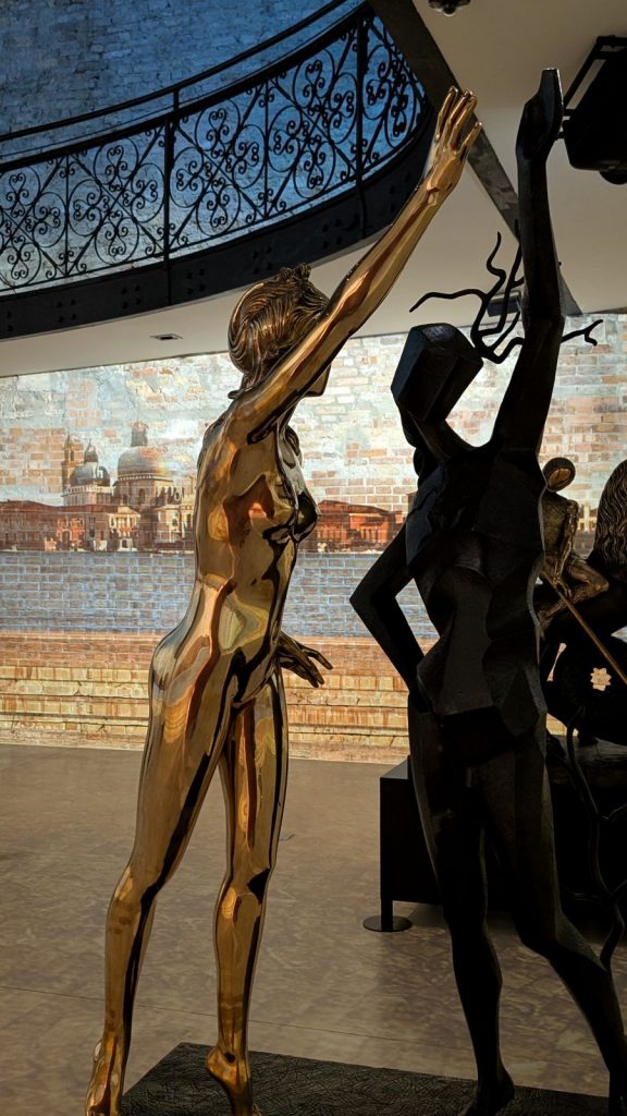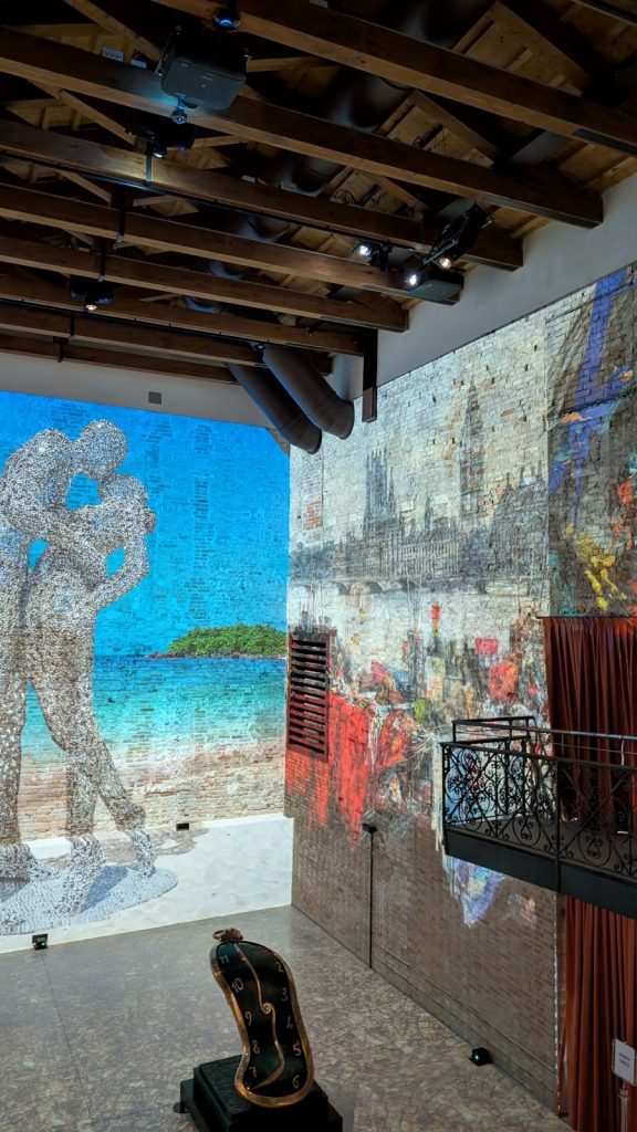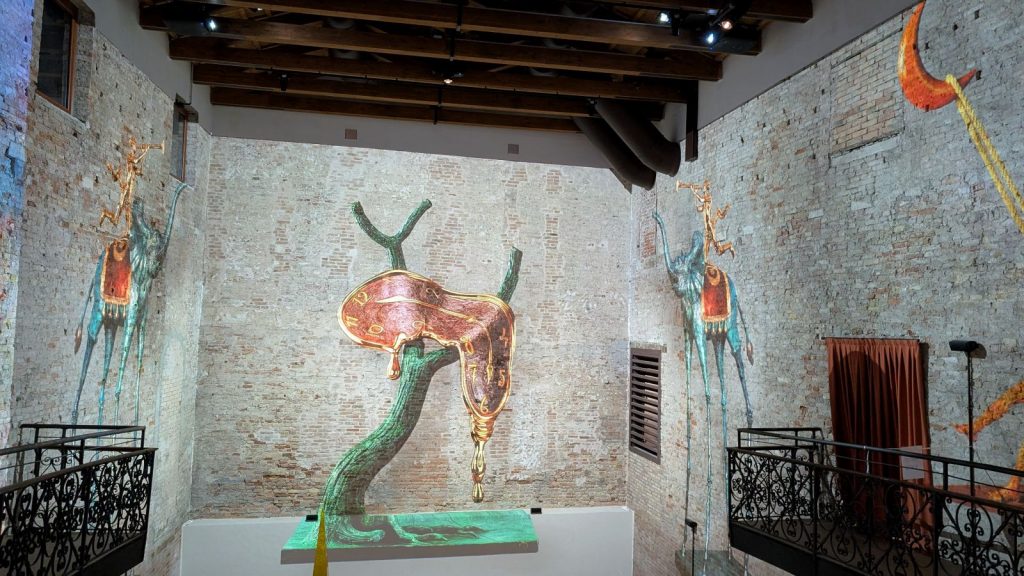 Der 15-minütiger, mit Unterstützung der KI realisierter Film „Serenissimersivo“ ist ein echtes Erlebnis. Die Besucherinnen und Besucher tauchen in Bilder und Musik ein, die realen Konturen verlieren an Kraft und man fühlt sich in die Träume von Salvador Dalí hineinversetzt. Es ist eine innovative Art und Weise, sich der Kunst anzunähern, denn man spürt und erlebt sie – weit über das einfache Betrachten hinaus. Man ist so sehr in den Film involviert, dass man beinahe meint, Arm in Arm in Venedig durch die fantastische Welt von Dalí zu spazieren.